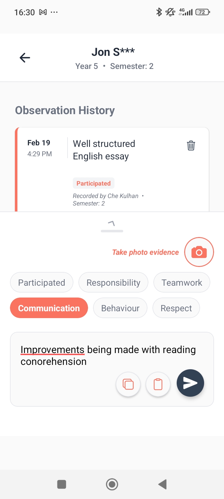 Definitely. Multiple teachers can log observations for the same class, ensuring a holistic view of student progress for shared reports.